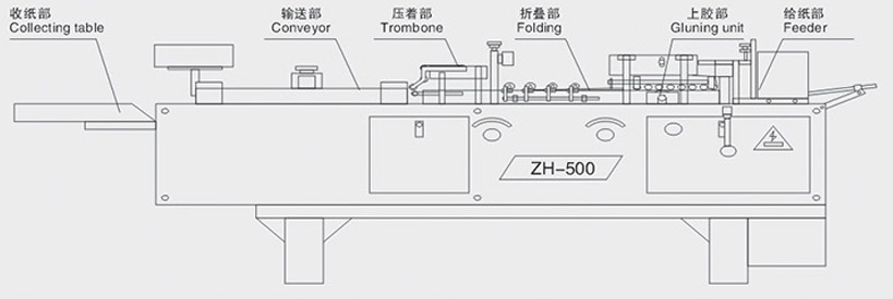 ZH-500 糊盒機是本公司最新推出的經濟型和靈活型的小型糊盒機,該機雖小但功能齊全,具有自動進紙、自動上膠、自動折盒、自動計數等功能,是中小型印刷廠必備設備。