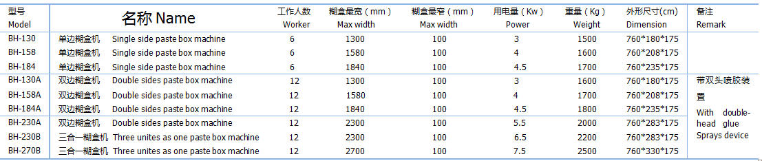 BH-130 單邊半自動糊盒機